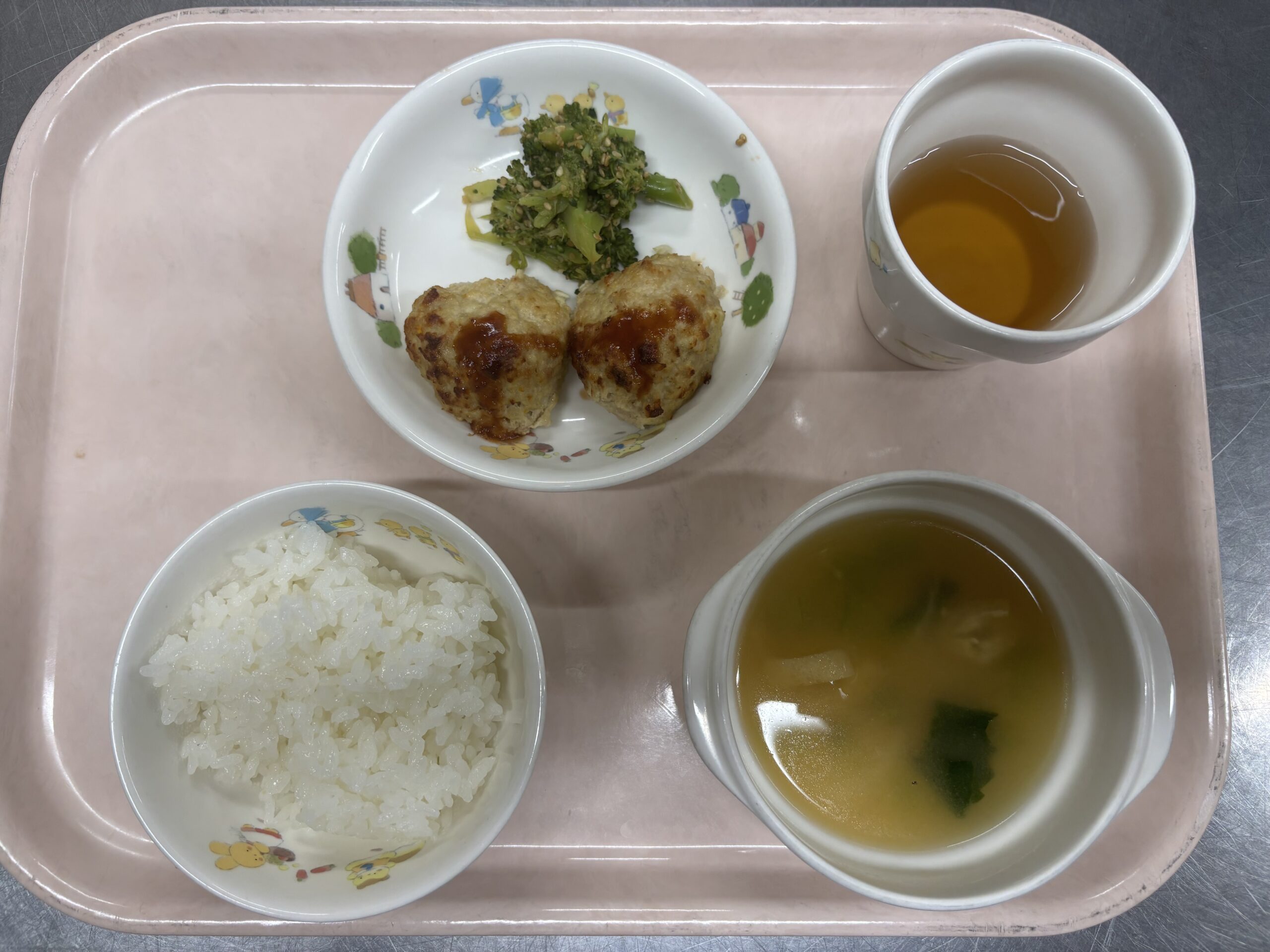 給食の献立 ごはん 味噌汁 豆腐ハンバーグ ブロッコリーのごま和え
