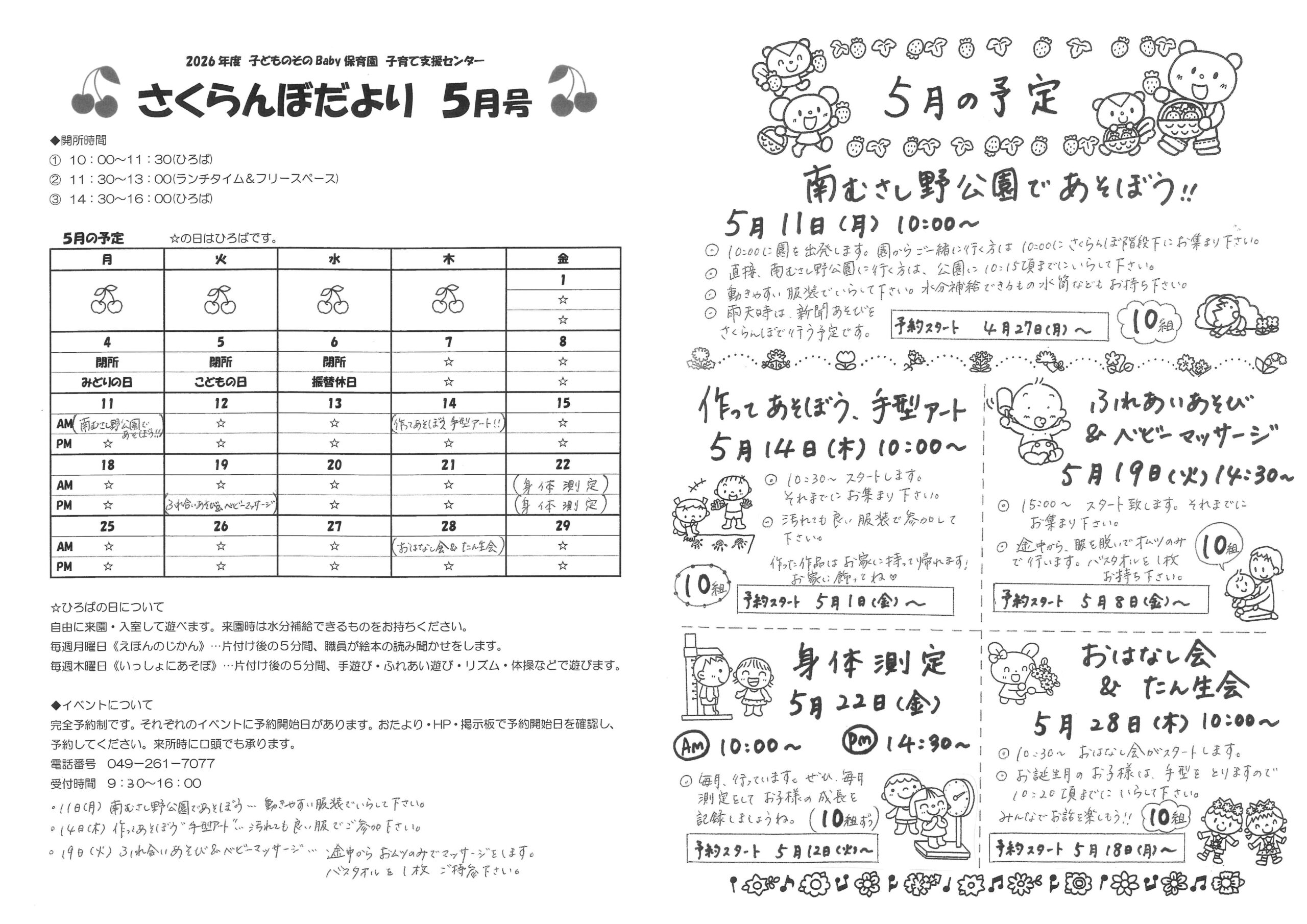 新緑が眩しい季節になりましたね! 5月の支援センターさくらんぼはイベント盛り沢山\(^o^)/