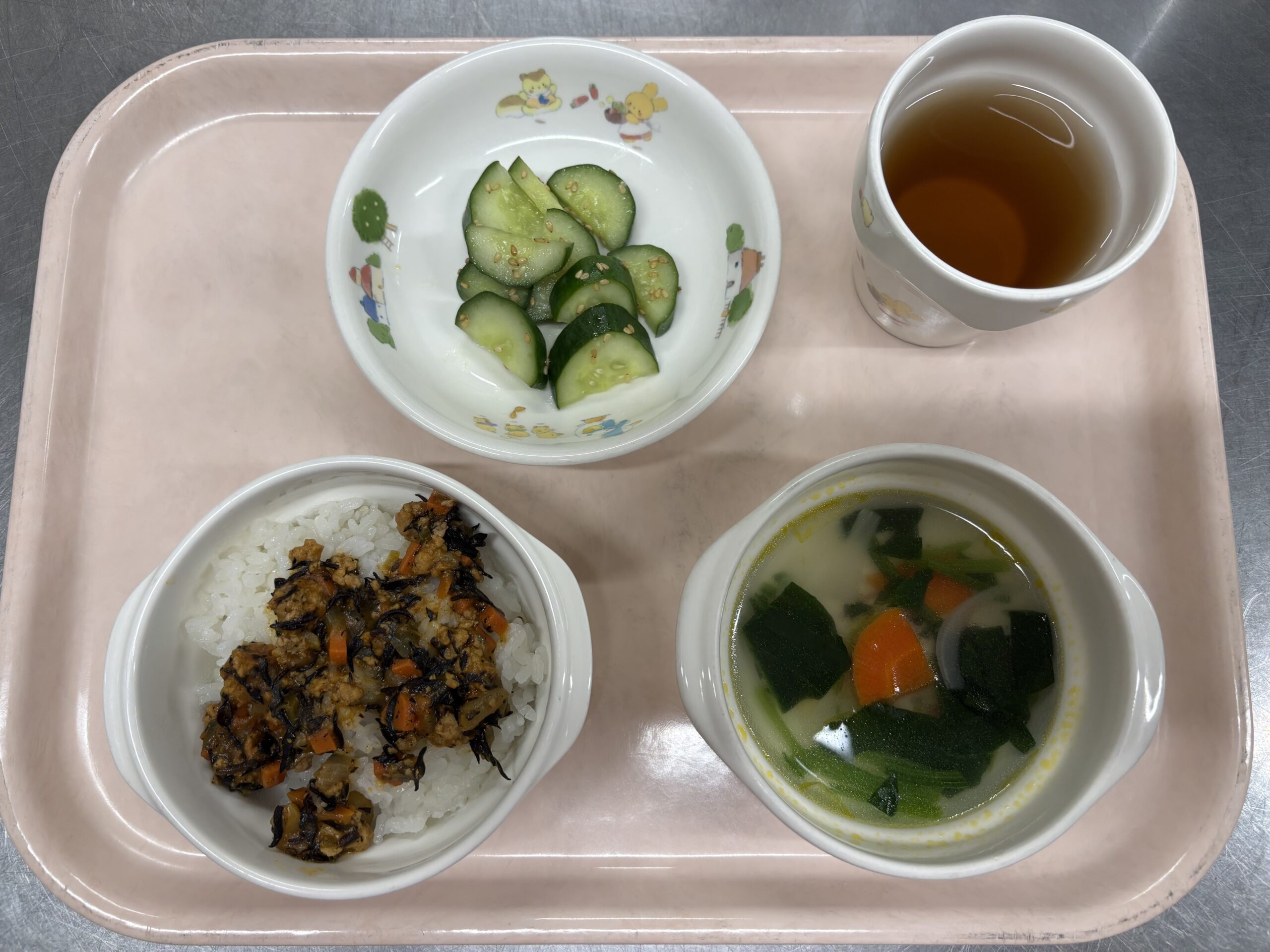 給食の献立 ひじきのドライカレー 野菜スープ きゅうりの和えもの