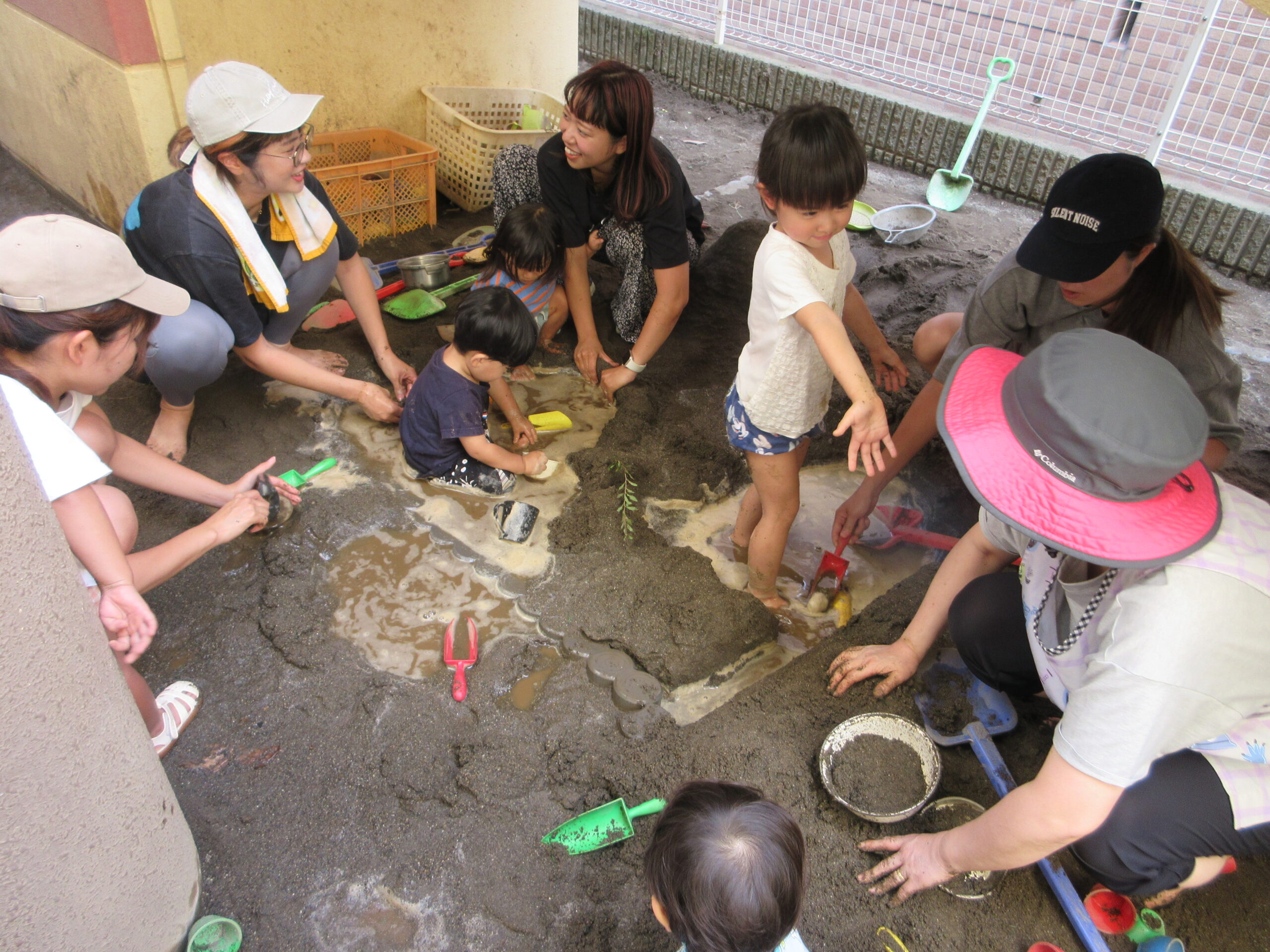 暑さもあったので水も出して泥でも遊べました。